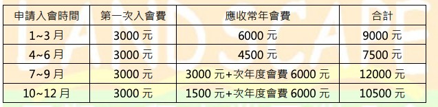 - 入會費用
