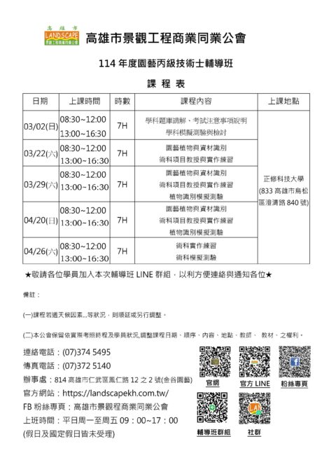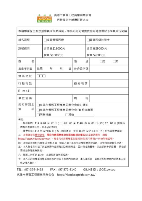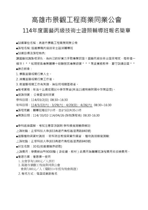 114年度造園景觀丙級技術士證照輔導班報名簡章